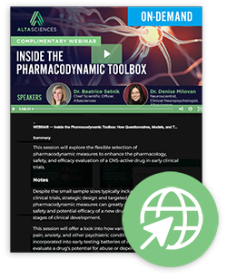 In this webinar you'll learn more about the flexible selection of pharmacodynamic measures to enhance the pharmacology, safety, and efficacy evaluation of a CNS-active drug in early clinical trials.